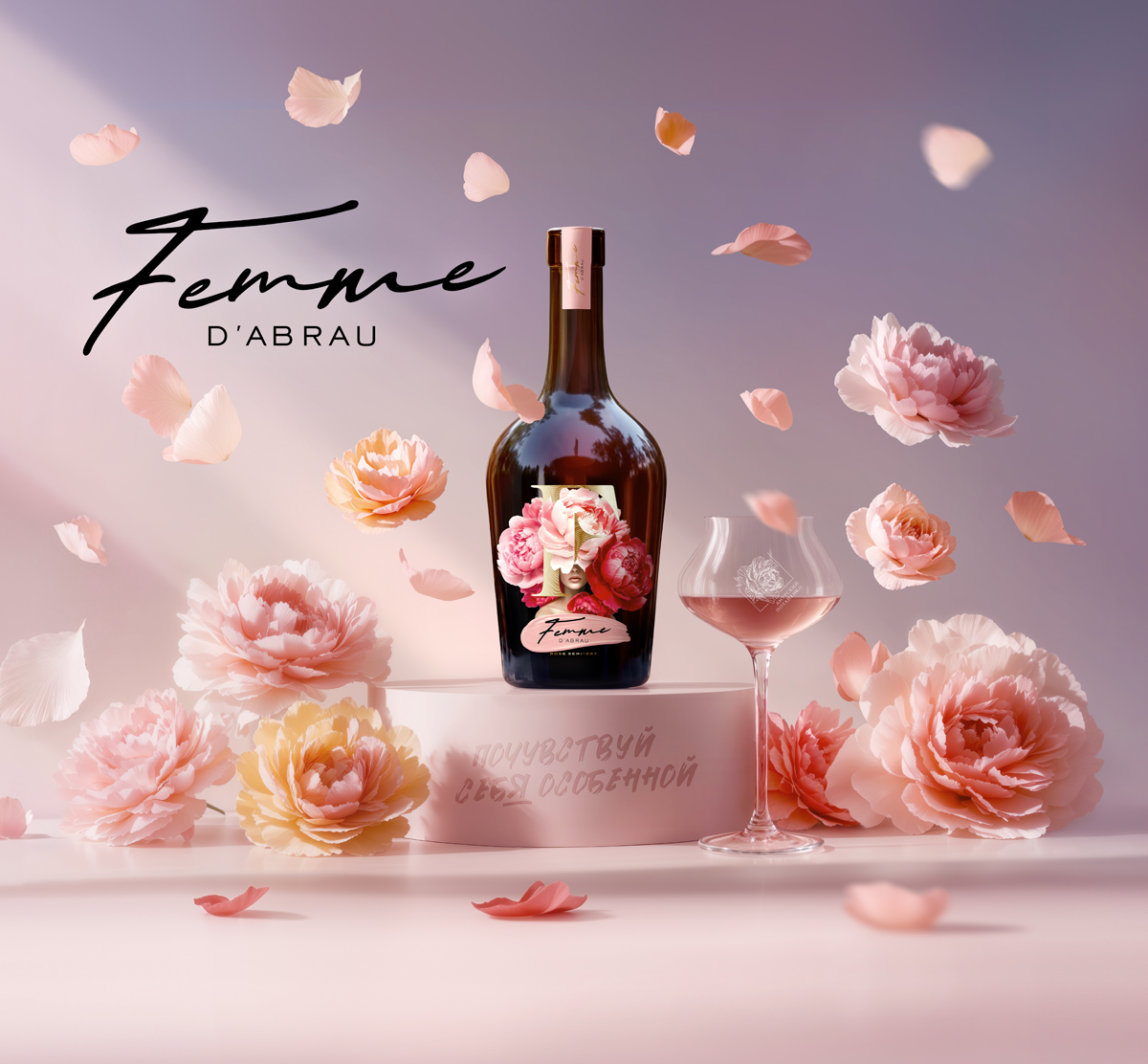 Коллекция Femme d’Abrau, ставшая символом женственности в коллекции «Абрау-Дюрсо» и уже завоевавшая сердца потребителей, представляет новинку — розовое полусухое вино из донского автохтонного сорта «цимлянский черный». Дизайн Femme d’Abrau Rose подтверждает яркий характер вина, сочетая узнаваемую форму бутылки для игристых вин и нежный цветочный мотив.