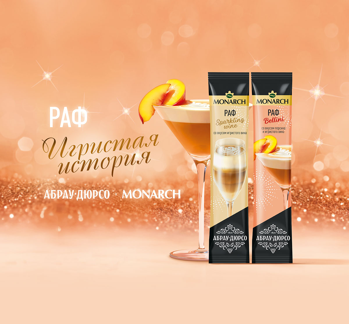 Новое сотрудничество объединило многолетний опыт и экспертизу «Абрау-Дюрсо» в создании игристых вин и мастерство MONARCH в работе с кофейными зернами. Раф в новом прочтении — это сочетание кофейной классики и утонченных вкусов вин «Абрау-Дюрсо», созданное, чтобы дарить моменты истинного удовольствия.
